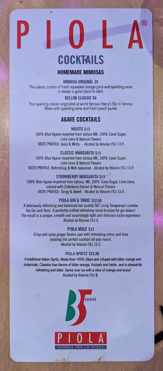 Introducing the menu of Piola Miami is a delightful journey into the heart of Italian cuisine, celebrated for its authentic flavors and vibrant atmosphere. Located at 11421 S Dixie Hwy, Miami, this eatery is not just a place to dine but a destination for exceptional culinary experiences. Renowned for their top-tier pizzas with crispy crusts and fresh ingredients, Piola also excels in its pasta dishes, praised by guests for their quality and taste.